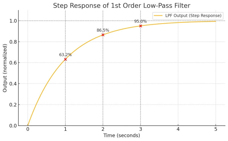 時定数は、入力がステップ状に変化したときに、出力が約63.2%に到達するまでの時間を表します。