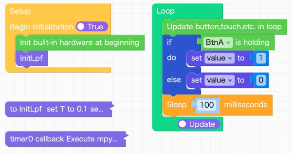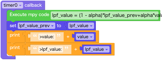 UIFlow2でも、簡単にLPF(ローパスフィルタ)を実装することができます。