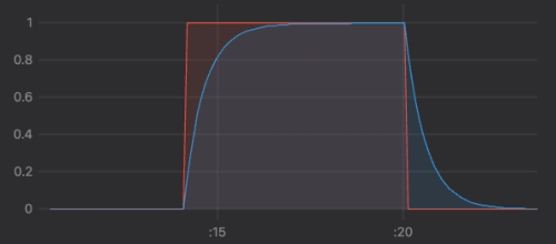 このように、時間が経つにつれて指数的に入力値に近づいていき、およそTi × 3秒後の時点で95%に達するのが特徴です。