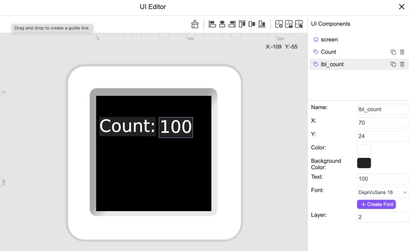 カウント値の画面表示のために、ラベルを配置します。