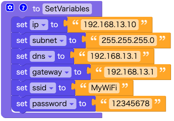 ネットワーク関連の変数 に初期値を設定します。