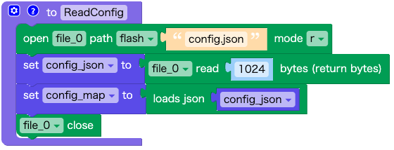 ファイルconfig.jsonを開いて、json文字列を変数 config_jsonに保存します。