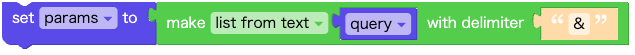 query から "&" で区切って、リストに分解したものを params に格納します。