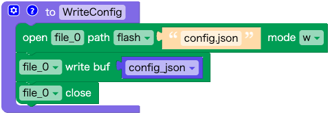 config_json の内容を フラッシュメモリのconfig.json に保存します。