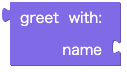 関数内部では、変数greetingに "Hello " + name を格納して、