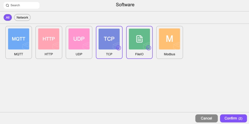 TCP、FileIOを選択して、Confirmをクリック