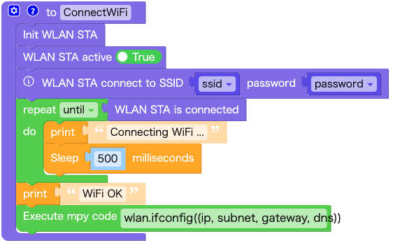 • WiFiに接続(関数:ConnectWiFi)