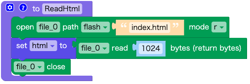 UIFlowでファイル読込の関数 ReadHtmlを作成